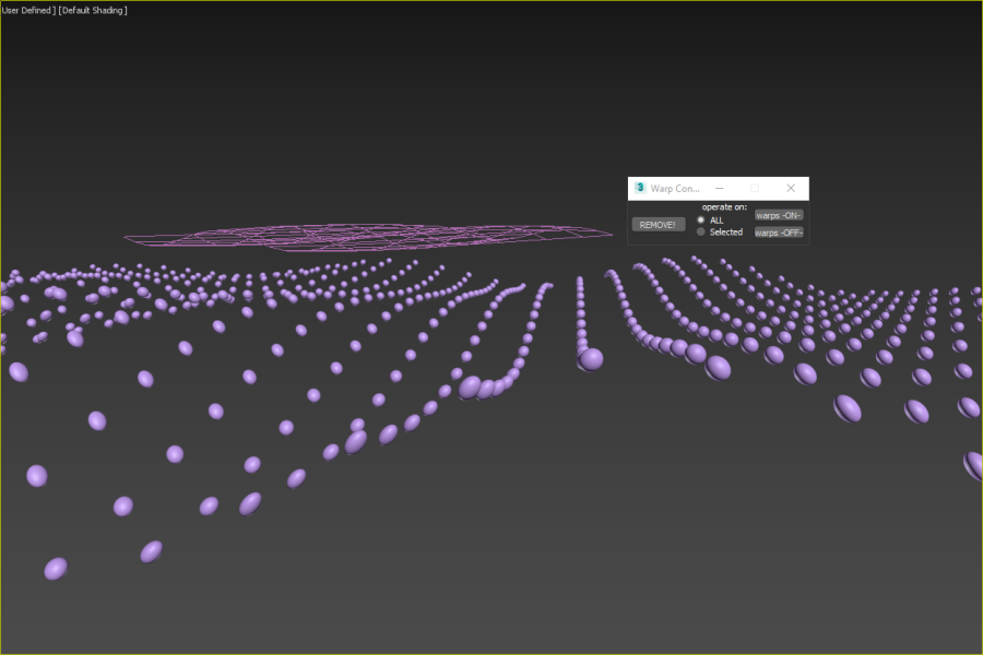 This is a macroscript to make working with space warps within Max more efficient. You can disable space warps (turn off the binding modifiers) selectively or globally. You can also delete the bindings selectively or globally. There is no "confirmation/are you sure" requestor for this, but undo is functional.